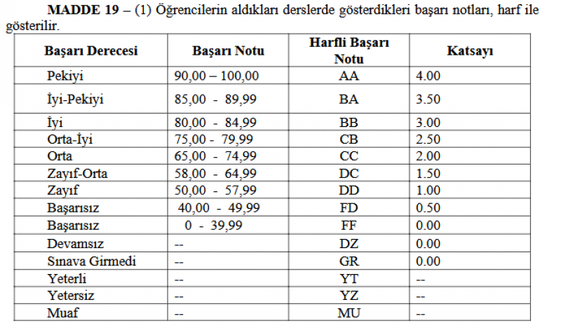 (9) Üç ders notu, öğrencinin ilgili dersi en son aldığı AKTS değeri üzerinden sisteme işlenir.