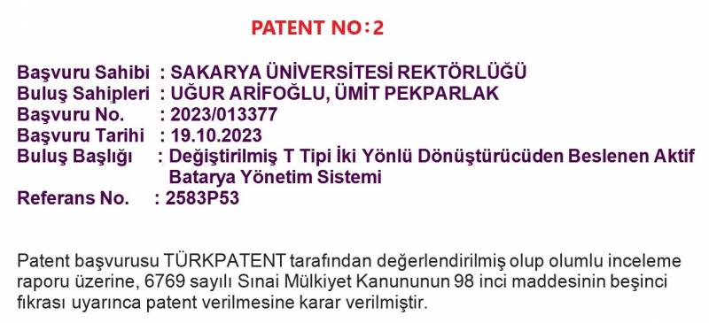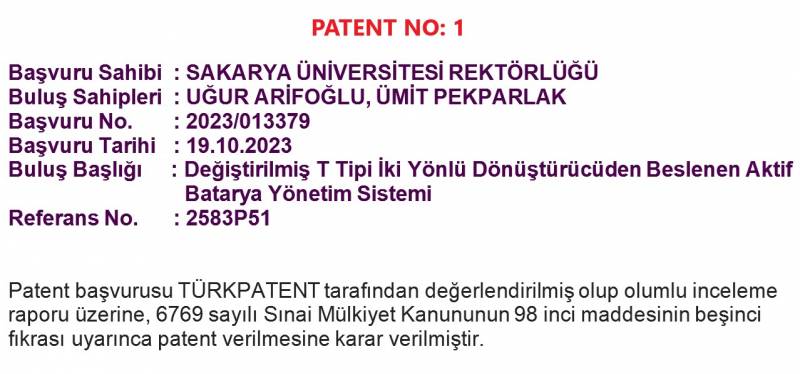 Bölümümüz öğretim üyelerinden Prof. Dr. Uğur ARİFOĞLU, gerçekleştirdiği yenilikçi araştırmalarla iki yeni patent alarak akademik başarılarına bir yenisini ekledi.